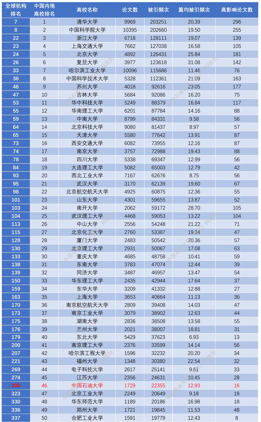 4、ESI材料科学学科中国内地高校排名(前50位)
