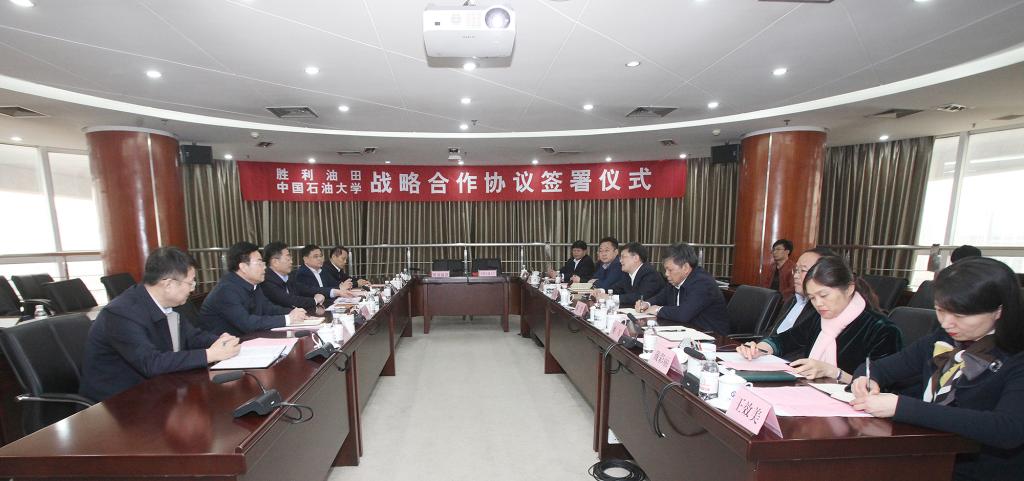 郝芳表示,胜利油田是学校校友最多的企业,是学校重要的合作伙伴。战略合作协议的签署标志着校企双方合作达到一个新的高度。学校将集中优质的资源,提供有效的政策保障,让双方的合作成为校企合作的典范。希望双方加强交流,联手在各个领域进行科研合作,取得更大成果,推动双方发展。