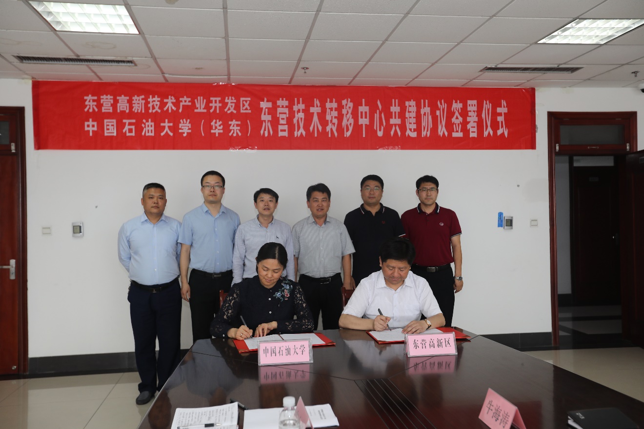 近日,中国石油大学(华东)与东营高新区签署合作协议,共建东营技术转移中心(以下简称“中心”)。科技处处长戴彩丽和东营区政府党组副书记、中国石油大学国家大学科技园胜利管委会主任康茂礼代表双方签署协议。东营高新区管委会、东营区油地校融合发展办公室和学校科技处、青岛中石大科技创业有限公司有关负责人参加签约仪式。