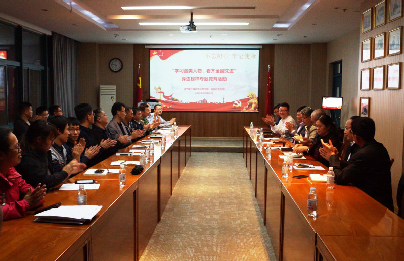 为庆祝中华人民共和国成立70周年,深入学习贯彻习近平总书记重要讲话和“不忘初心、牢记使命”主题教育工作会议精神,全面落实“奋斗的我,最美的国”宣传教育活动,10月10日,科技处党支部和油气藏工程研究所党支部共同举办“学习最美人物,看齐全国先进”身边榜样专题教育活动,这也是两支部结对共建以来举行的第七次专题活动。本次专题教育活动邀请到了青岛最美科技工作者蒋文春教授和全国先进工作者田原宇教授作为主讲嘉宾。石油工程学院党委书记赵放辉、科技处处长戴彩丽,挂职干部东营市科技局副局长郭乃利应邀出席。科技处党支部、油气藏工程研究所党支部全体成员以及石油工程学院的部分支部书记、党员同志一同参加。本次专题教育活动由科技处党支部书记董成立主持。