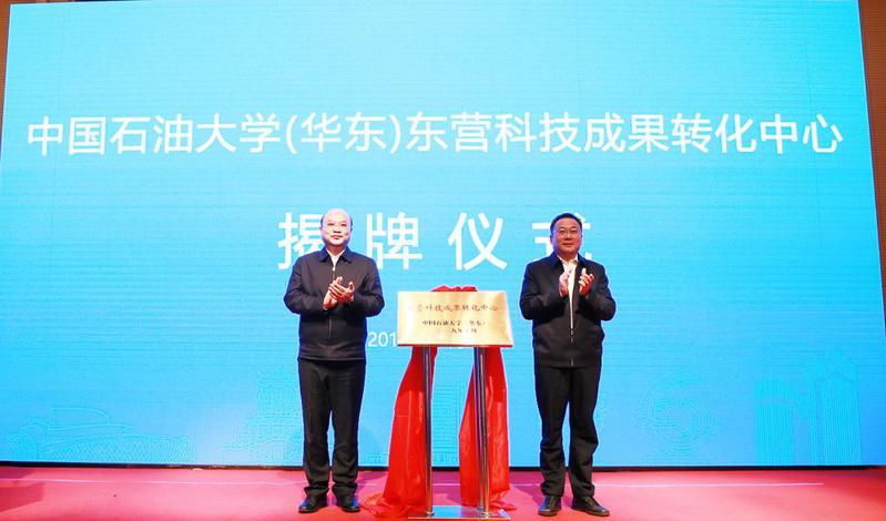 操应长与王晓军为中国石油大学(华东)东营科技成果转化中心揭牌
