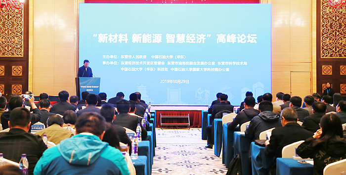 10月29日,2019东营•中石大“新材料 新能源 智慧经济”高峰论坛举行,论坛由东营市人民政府、中国石油大学(华东)联合主办,东营经济技术开发区,学校科技处、国家大学科技园办公室承办。