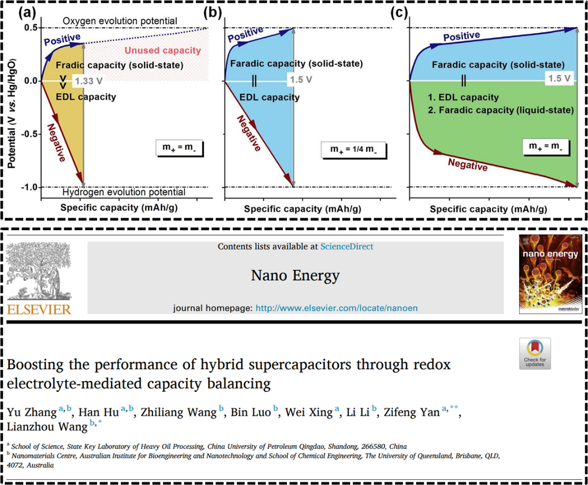 题目为《混合超级电容器中不对称电解质概念设计助力比容量提升》(Boosting the performance of hybrid supercapacitors through redox electrolyte-mediated capacity balancing)的研究论文发表在材料领域顶级期刊Nano Energy (DOI information:10.1016/j.nanoen.2019.104226)。博士生张誉为该论文第一作者。yl23455永利阎子峰教授和澳大利亚昆士兰大学王连洲教授为共同通讯作者。中国石油大学(华东)为第一署名单位,该项国际合作研究成果得到国家创新型人才国际合作培养项目资助。