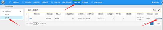 (1)横向项目:在平台顶端点击“入账办理”,选择左侧“已认领”,在项目入账列表中找到相应认领记录,点击最右侧“打印分割单”,相关人员签字,将分割单拍照上传到项目文档(项目文档上传请按附件3操作)。