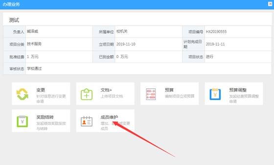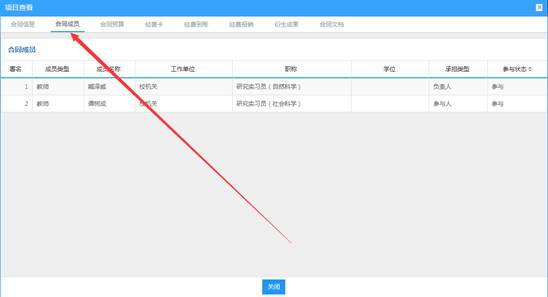 点击项目名称,在“合同成员”里查看。若未添加,则在“办理业务”中的“成员维护”里编辑、提交。