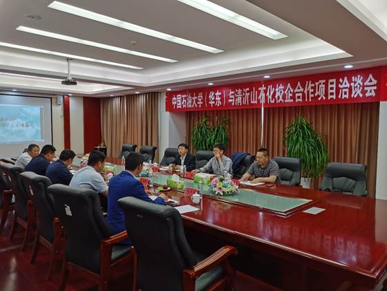 在观看山东清沂山石化科技有限公司宣传片后,赵云强董事长介绍了煅后焦脱硫污水处理和煅后焦装置原料性质变化等生产实际中的技术难题,并提出了公司在员工安全素质、应急处置和安全生产技术培训方面的需求。