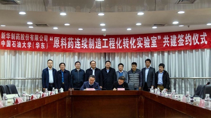 12月1日,山东新华制药股份有限公司(简称“新华制药”)与中国石油大学(华东)签署协议,共建原料药连续制造工程化转化实验室。党委副书记万云波与新华制药总经理杜德平代表校企双方在协议上签字。