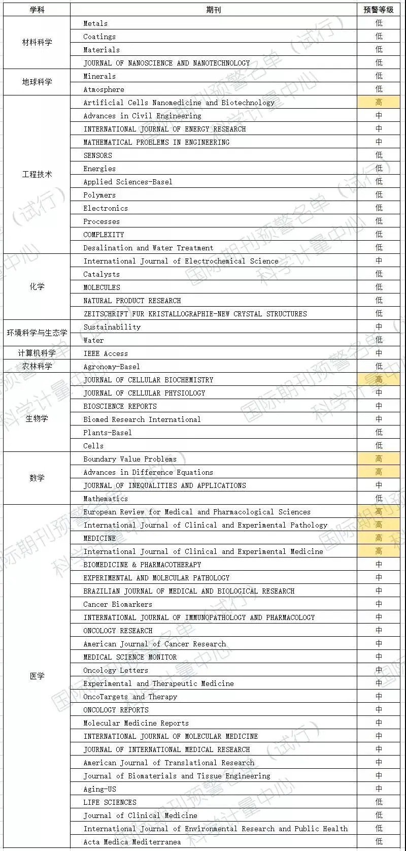 2020年首次发布《国际期刊预警名单(试行)》: