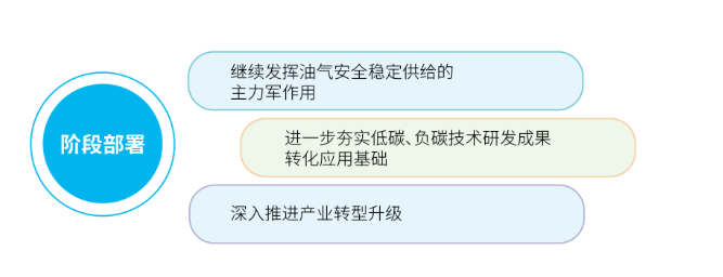 以油气产业转型、新能源快速发展为主要手段,控制碳排放总量有序下降,负碳技术实现商业化应用。
