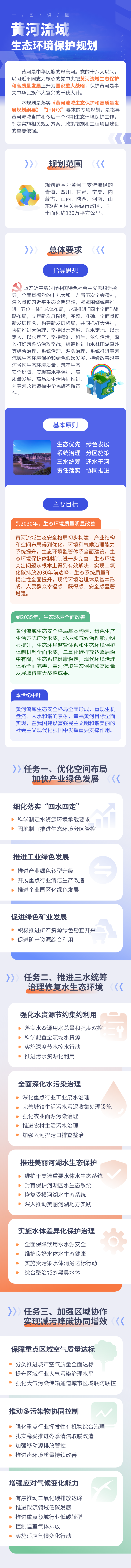 近日,经推动黄河流域生态保护和高质量发展领导小组同意,生态环境部、国家发展改革委、自然资源部、水利部四部门联合印发《黄河流域生态环境保护规划》(以下简称《规划》),明确了黄河流域生态环境保护的指导思想、基本原则、主要任务、重点工程和保障措施。《规划》是落实《黄河流域生态保护和高质量发展规划纲要》“1+N+X”要求的专项规划,是指导黄河流域当前和今后一个时期生态环境保护工作,制定实施相关规划方案、政策措施和工程项目建设的重要依据。