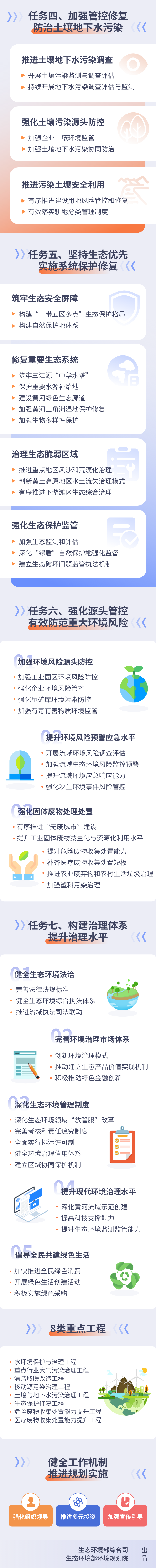 为保障目标任务完成,《规划》部署了8类重点工程,提出了强化组织领导、推进多元投资、加强宣传引导三方面工作要求。