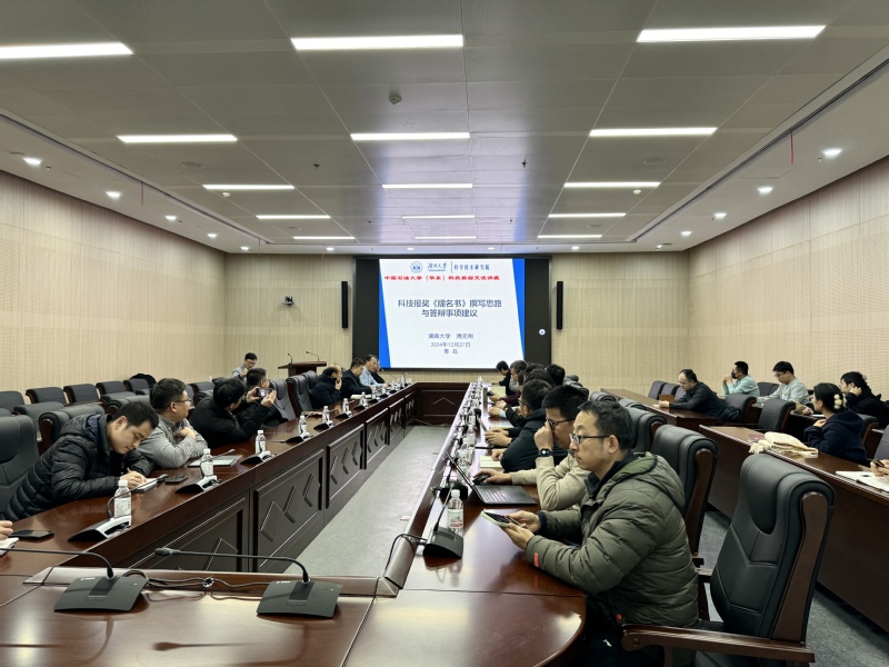 12月27日,科技处组织召开2025年度科技奖励申报培训会,邀请湖南大学周克刚研究员做指导报告。各院部师生、科研秘书等50余人参会。会议由科技处副处长谭树成主持。